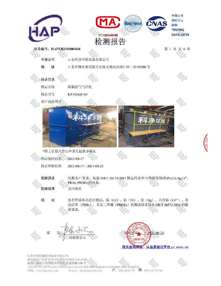- 上一條:不銹鋼溶氣氣浮機檢測報告