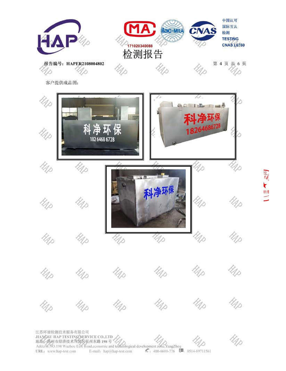 不銹鋼一體化污水處理設(shè)備檢測(cè)報(bào)告