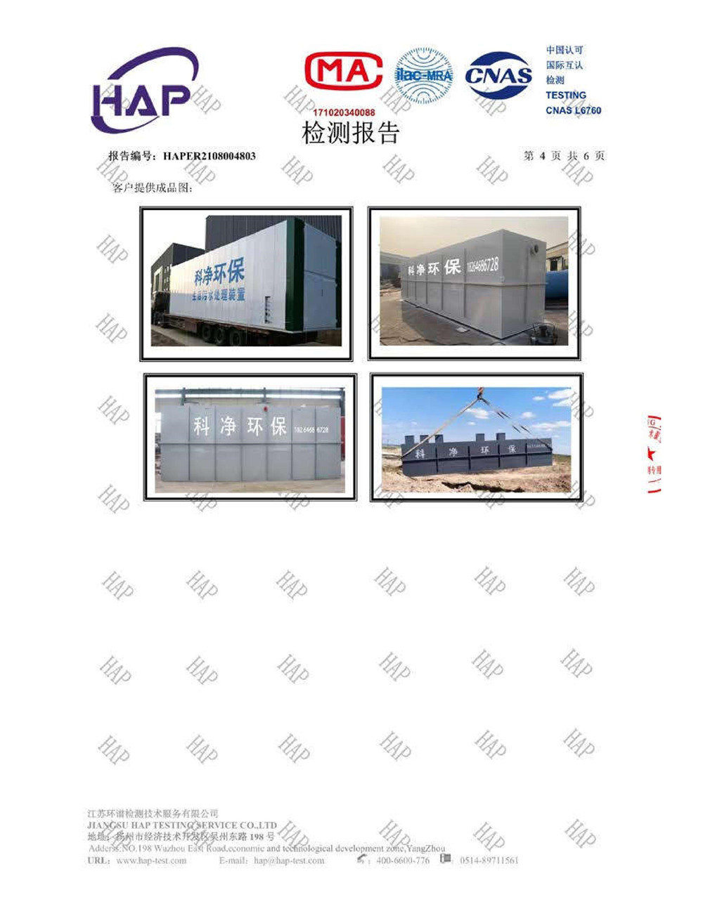 碳鋼一體化污水處理設(shè)備檢測報(bào)告